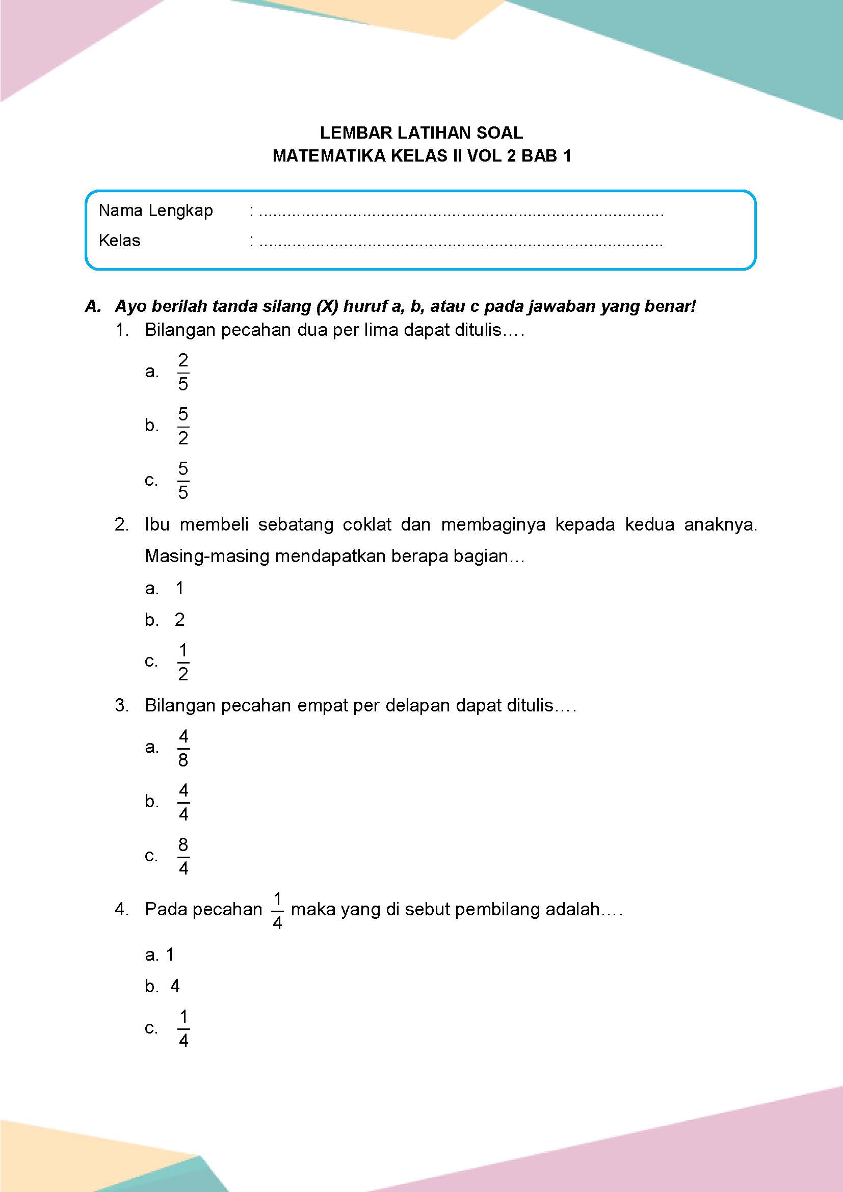 Latihan Soal Matematika Kelas 2 Vol 2 Bab 1