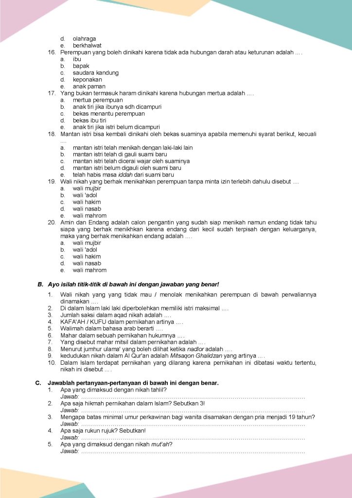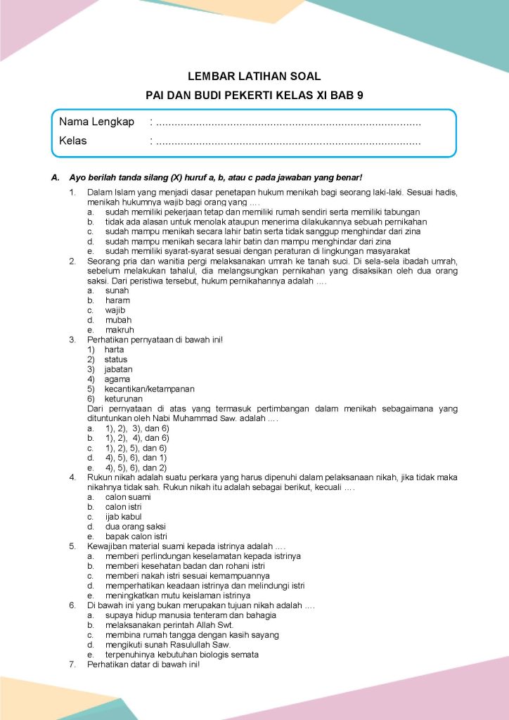 Latihan Soal PAI & Budi Pekerti Kelas 11 Bab 9