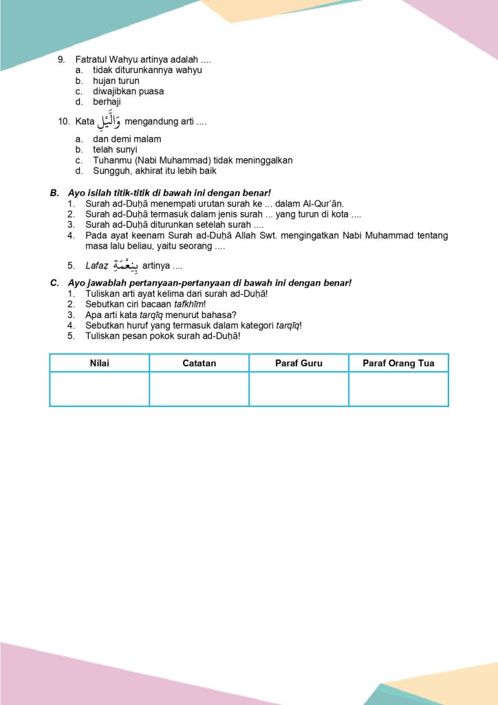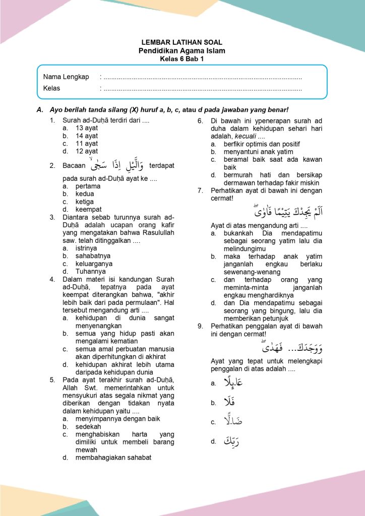 Latihan Soal PAI & Budi Pekerti Kelas 6 Bab 1