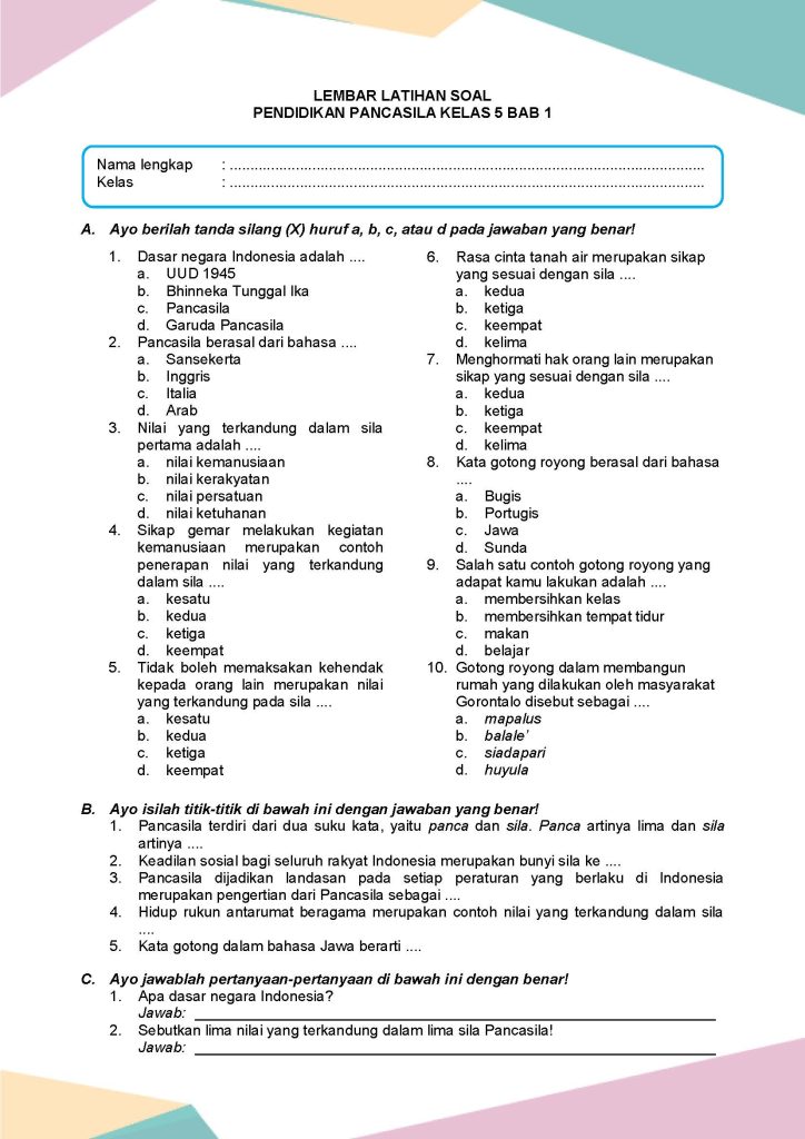 Latihan Soal Pendidikan Pancasila Kelas 5 Bab 1