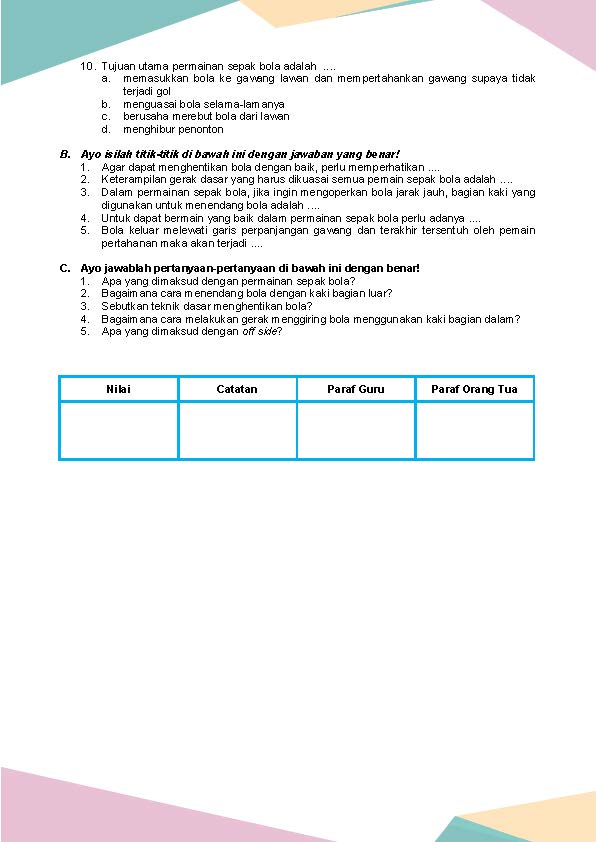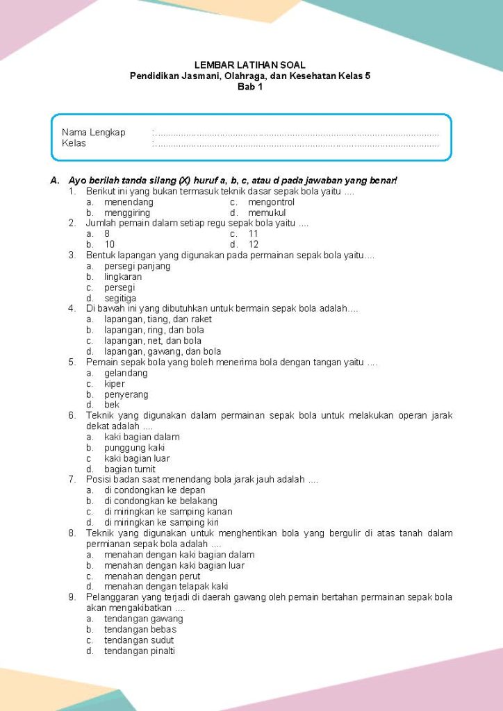 Latihan Soal PJOK Kelas 5 Bab 1