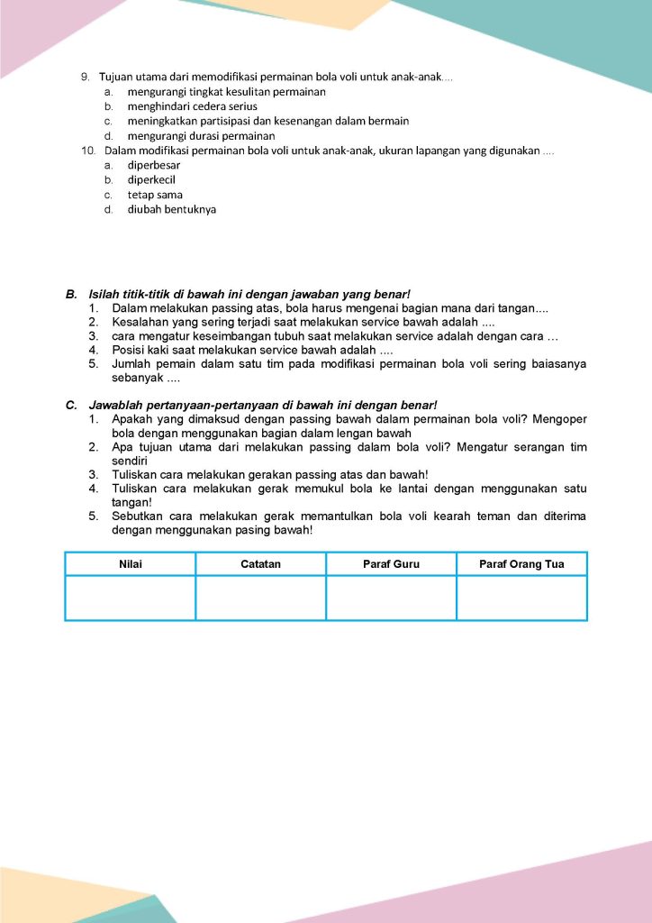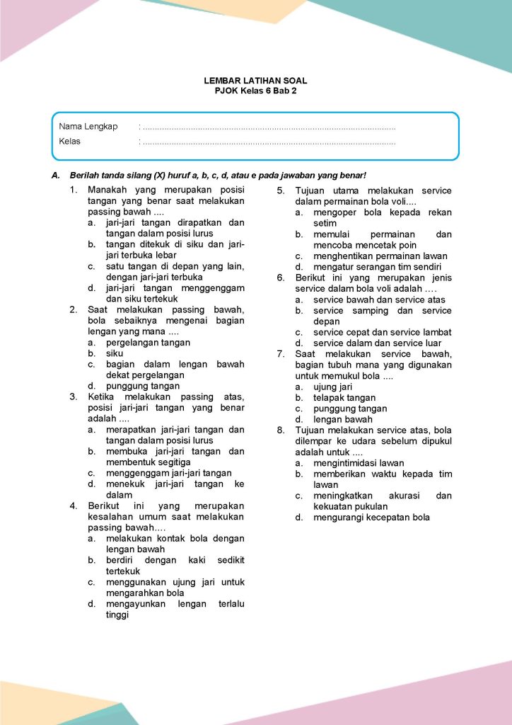 Latihan Soal PJOK Kelas 6 Bab 2